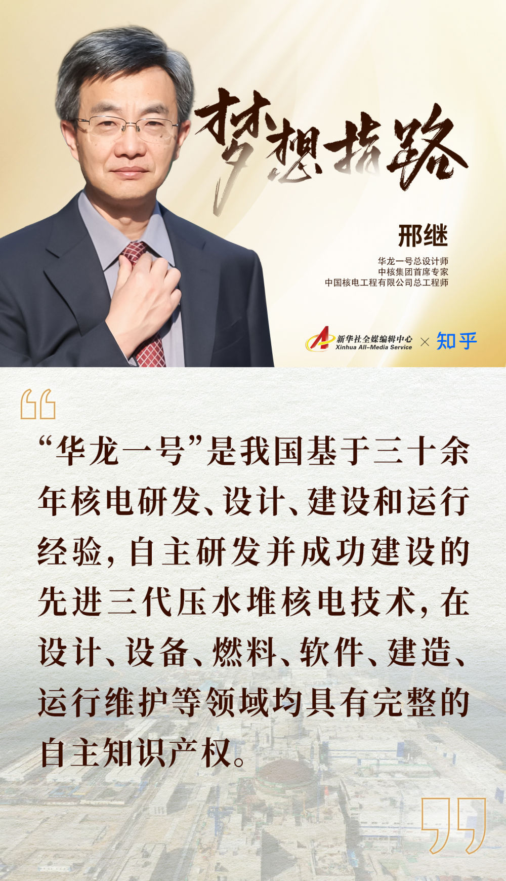 “华龙一号”总设计师邢继和来自各行各业的众多网友展开了隔空讨论。他回答了两个足以让科技迷“燃烧”起来的问题:如何看待我国自主研发的第三代核电“华龙一号”?科技自主创新对中国有多重要?