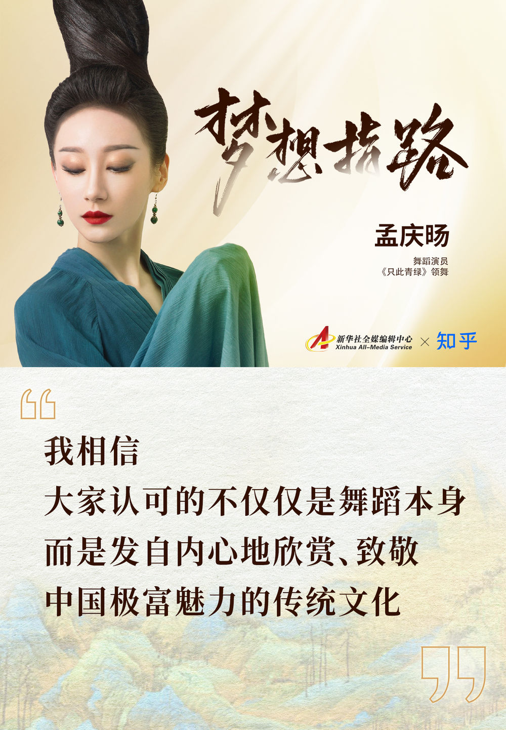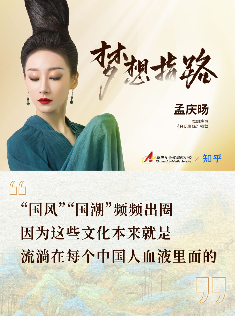 在孟庆旸看来,《只此青绿》受到欢迎,得到大家认可,不仅仅是舞蹈本身,而是发自内心地欣赏、致敬中国极富魅力的传统文化。