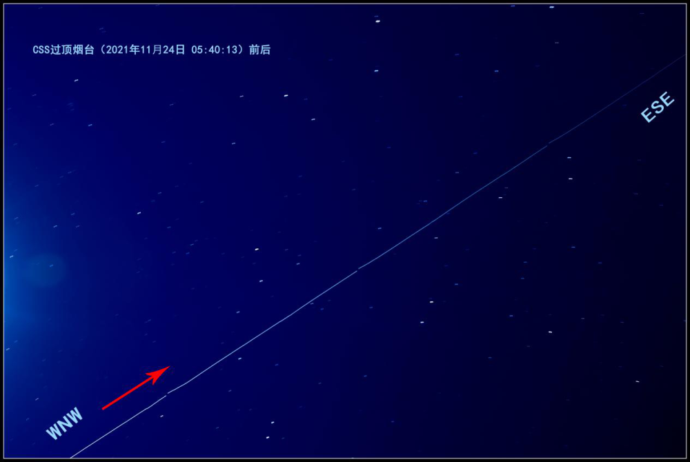 ↑中国空间站飞越齐齐哈尔市上空。新华社记者唐铁富 摄