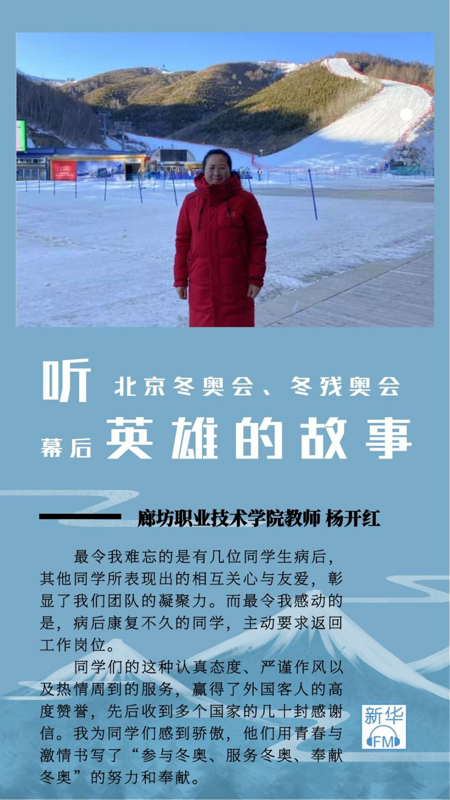 北京冬残奥会已经圆满落幕,但是服务冬奥、冬残奥这段经历让许多人终身难忘,他们激动的心情至今仍难以平复。北京冬奥会、冬残奥会成功举办的背后,是无数单位和个人的付出。他们中有活跃在运动员颁奖广场的工作人员、有负责服务保障团队的带队老师,也有在竞赛场馆电力保障一线工作的员工,尽管岗位各不相同,但大家的目标都是一致的。让我们通过他们的视角,来听听这段难忘的经历。