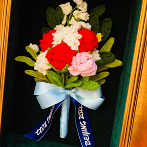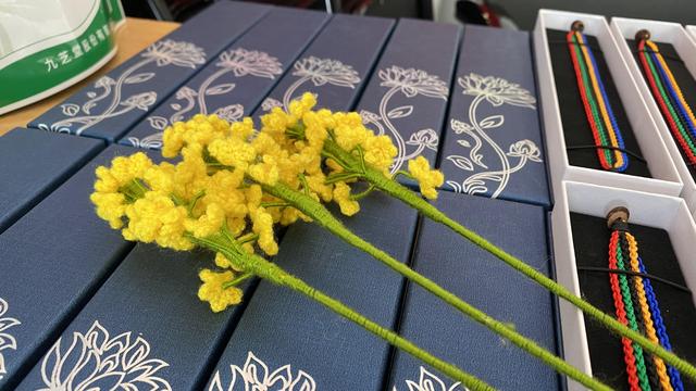 而是海派编结技艺钩编而成的绒线花束