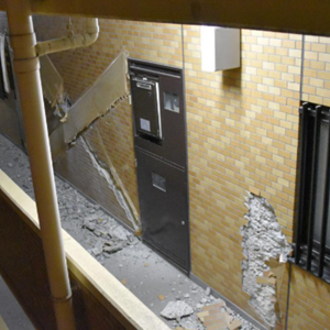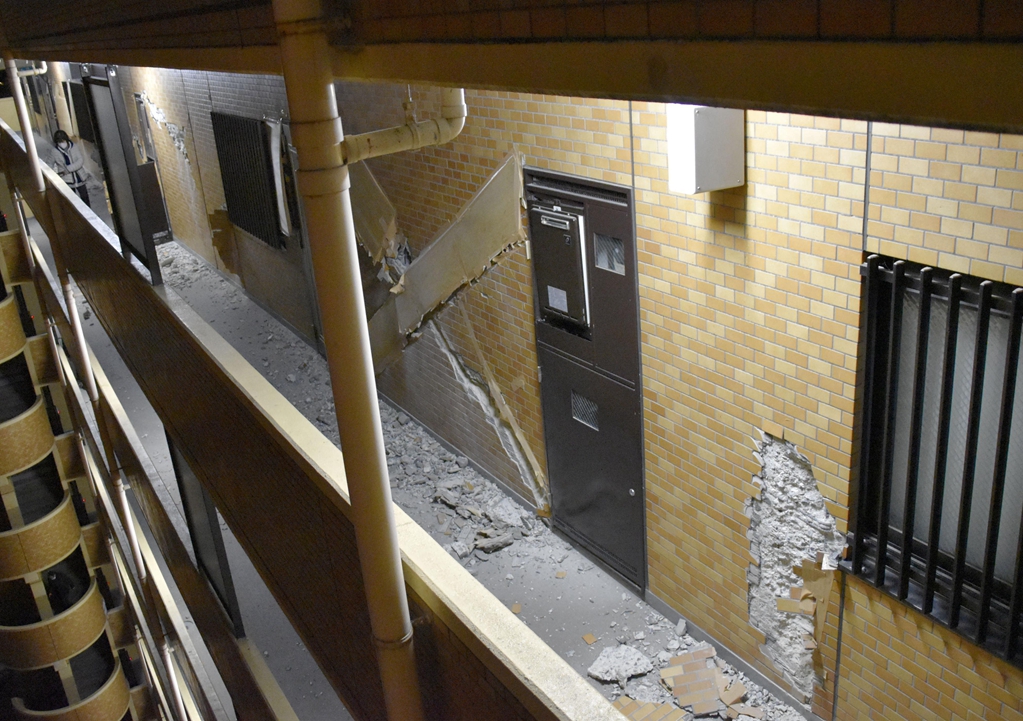 福岛市一住宅墙体因地震受损(3月16日摄)。新华社/共同社