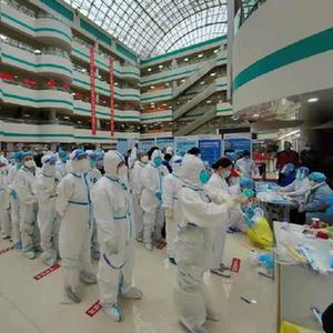 全院近2500人全员请战。23个疗区迅速划定,其中900多名医护人员进入红区,1000多人投入各类保障。