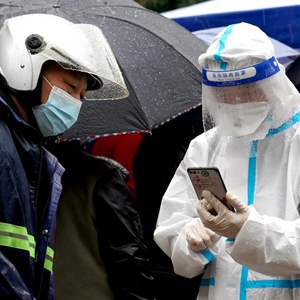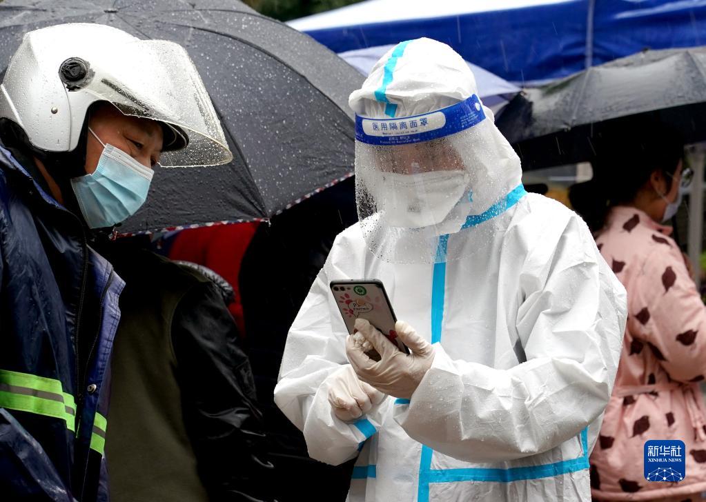 当日,上海迎来降雨降温天气,医务人员、警察、社区工作者、志愿者等坚守抗疫一线,为民服务。3月16日、17日,上海启动新一轮网格化核酸筛查。