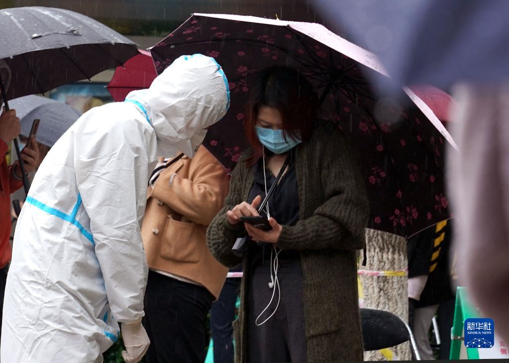 当日,上海迎来降雨降温天气,医务人员、警察、社区工作者、志愿者等坚守抗疫一线,为民服务。3月16日、17日,上海启动新一轮网格化核酸筛查。