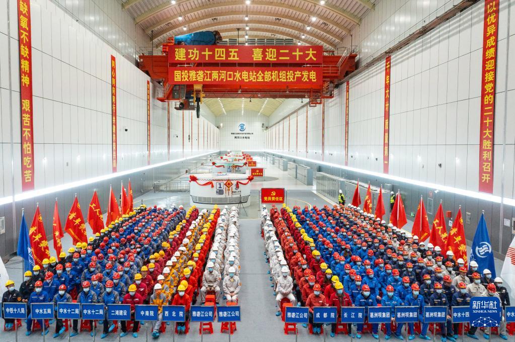 3月18日拍摄的雅砻江两河口水电站全部机组投产发电仪式。新华社记者 沈伯韩 摄