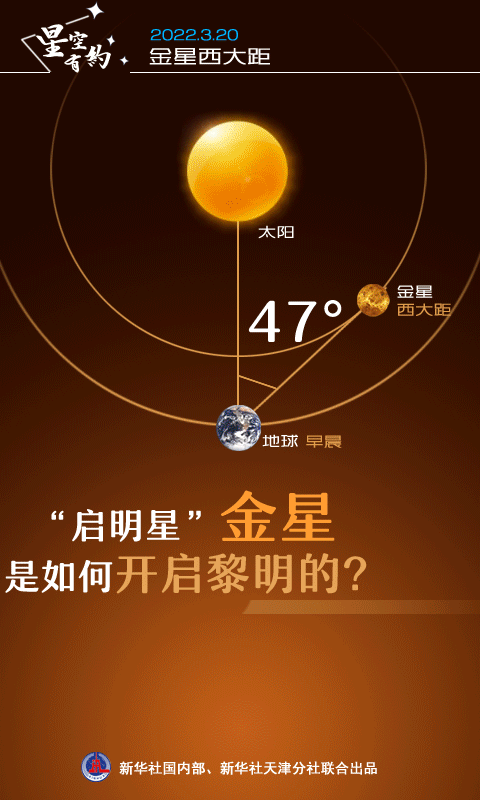 新华社天津3月18日电(记者周润健)天文科普专家介绍,3月20日金星将迎来西大距,当日清晨,以“启明星”姿态现身的金星会在东南方天空熠熠生辉,感兴趣的公众可以早起,用肉眼看看这颗“夜空中最亮的星”是如何开启黎明的。