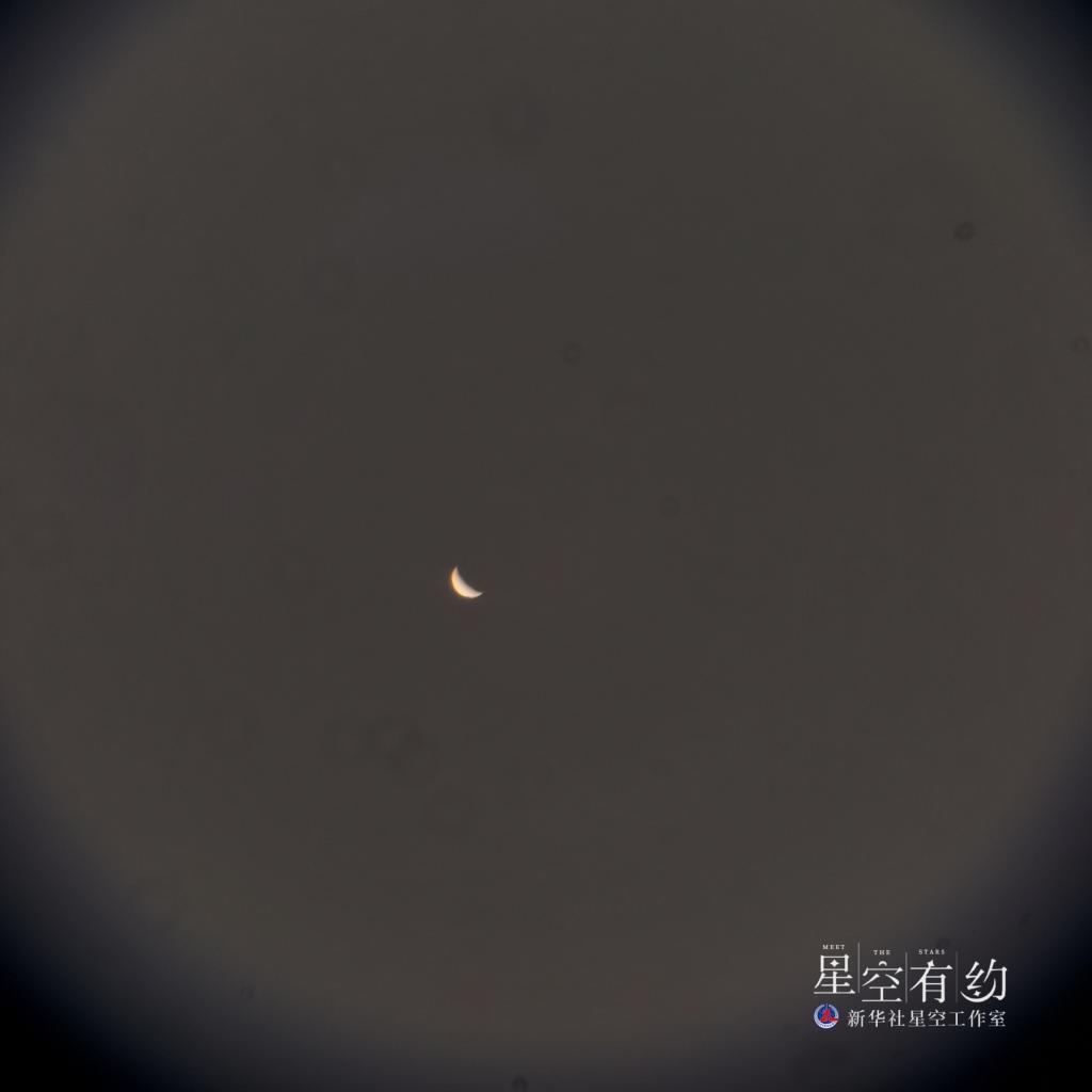 2015年9月10日凌晨在江苏淮安市区拍摄的“金星合月”。(新华社发)