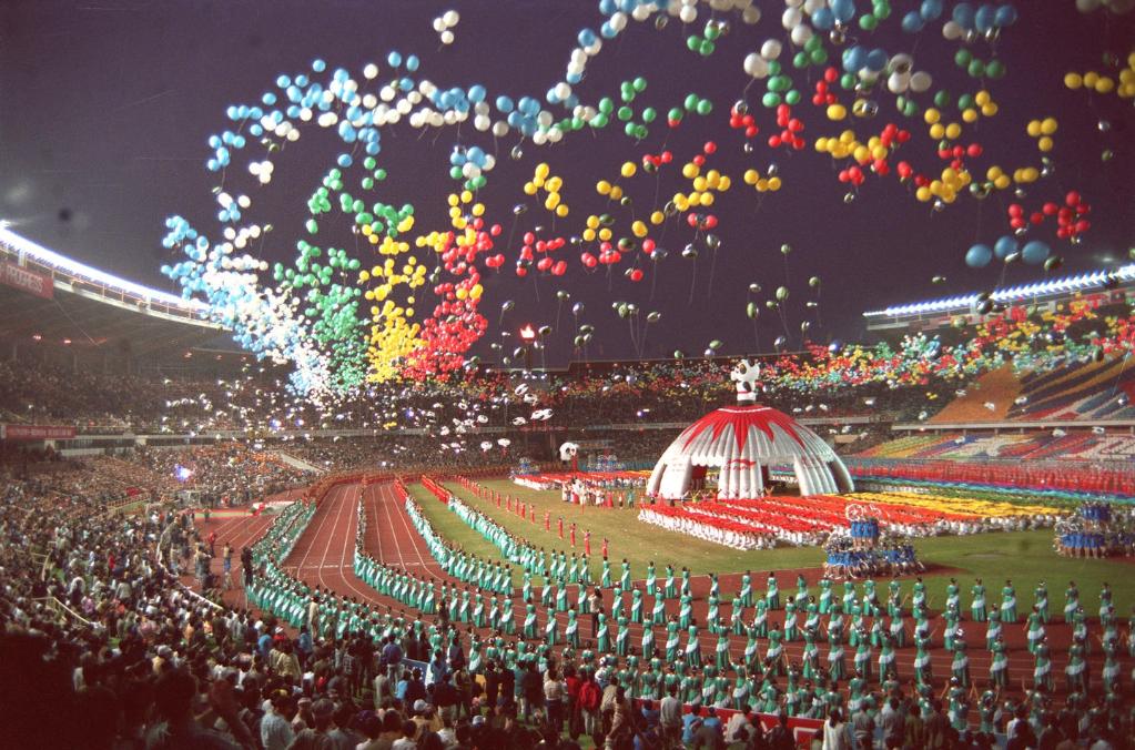 图为1990年9月22日,第十一届亚运会开幕式在北京工人体育场举行。新华社记者何惠飞摄