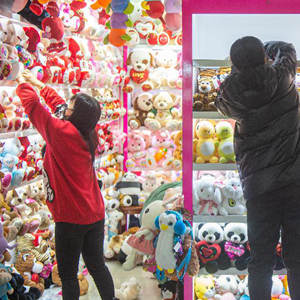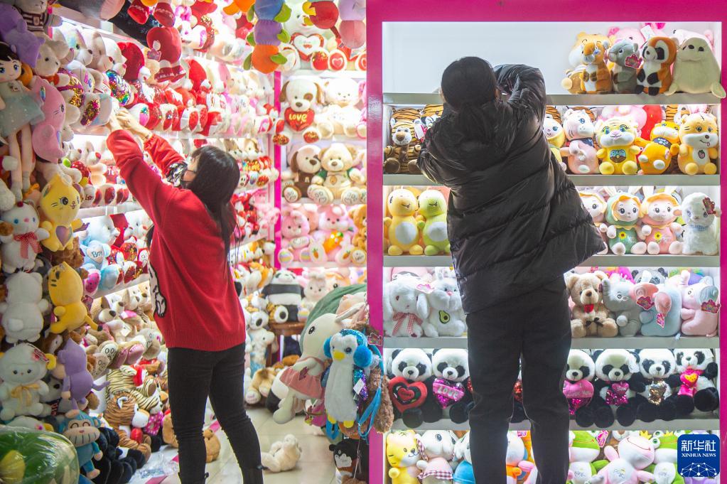 义乌市中国小商品城经过春节假期的休整后重新开市营业,这是经营户整理货架(2月12日摄)。新华社记者 江汉 摄