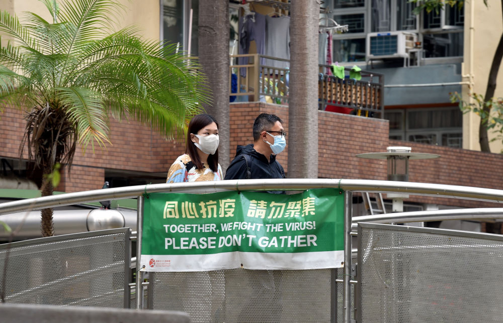 3月17日,在香港美孚,市民佩戴口罩外出。新华社记者卢炳辉 摄