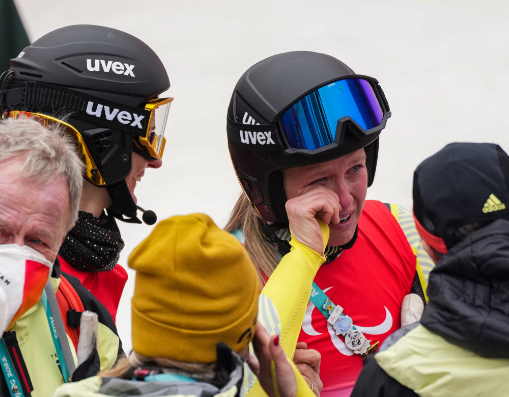 ↑ 3月5日,加拿大选手莫莉·杰普森在残奥高山滑雪项目女子滑降(站姿)比赛后。