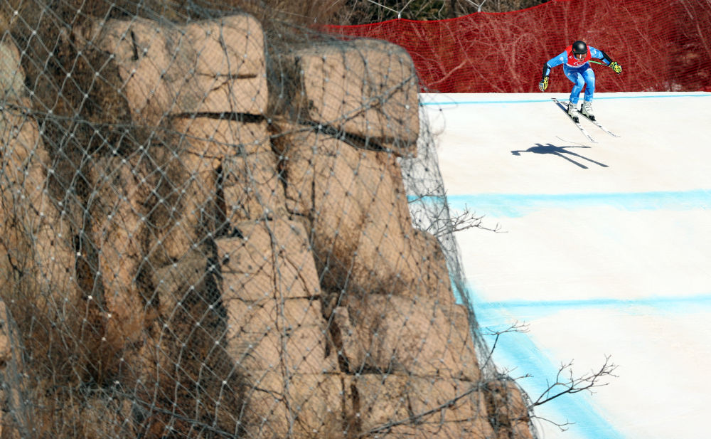 ↑ 3月5日,意大利选手意大利选手费代里科·佩利扎里在男子滑降站姿组比赛中。