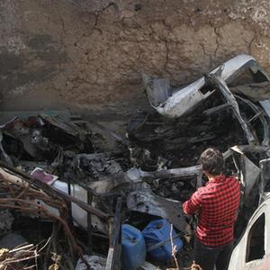 2021年9月2日,阿富汗喀布尔一处被美军空袭过的居民区的居民站在汽车残骸旁。(新华社发,塞夫拉赫曼·萨菲摄)