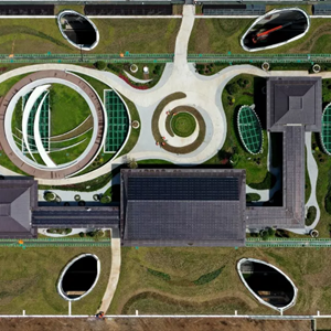 雄安新区首座新建220千伏变电站——剧村站,位于容东片区体育公园内,东临市政道路,北侧和西侧为城市绿地。雄安新区致力塑造轮廓舒展、韵律起伏的城市天际线,钢筋混凝土搭建的变电站如何与城市景观融为一体?