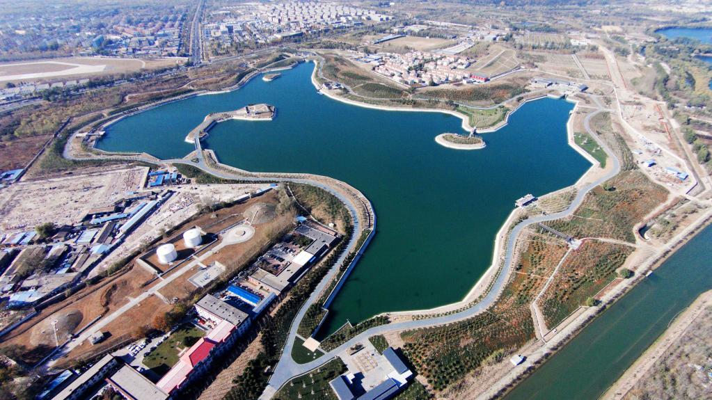 图为2014年11月14日拍摄的团城湖调节池(左上)和团城湖明渠(右下)新华社记者 邢广利 摄)
