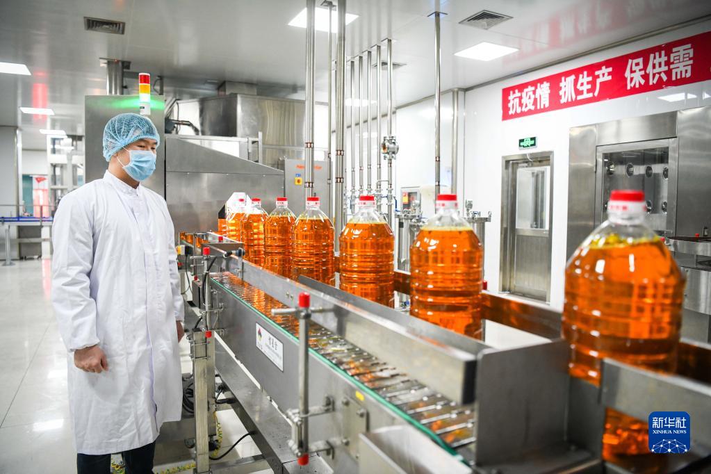 2020年2月20日,工人在益海嘉里(哈尔滨)粮油食品工业有限公司生产车间工作。新华社记者 王松 摄