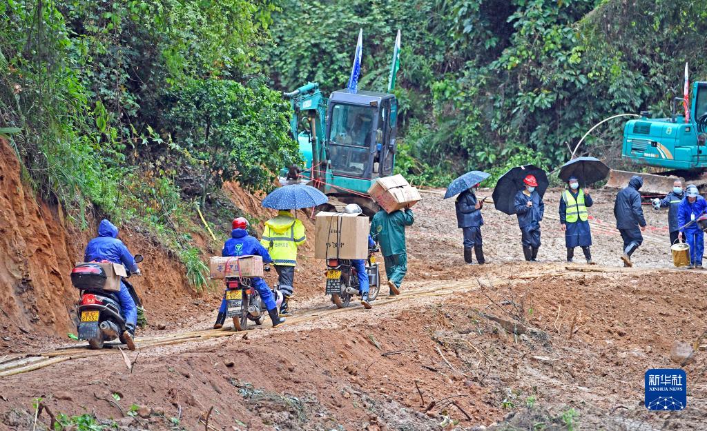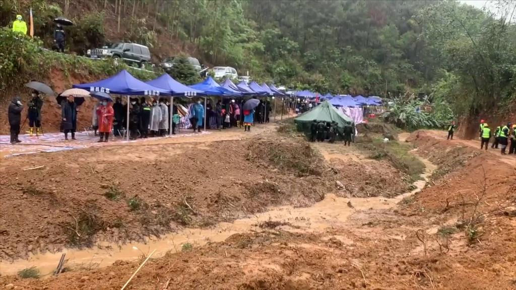 23日上午,受连续降雨影响,藤县空难救援现场道路泥泞,救援遭到一定阻碍。