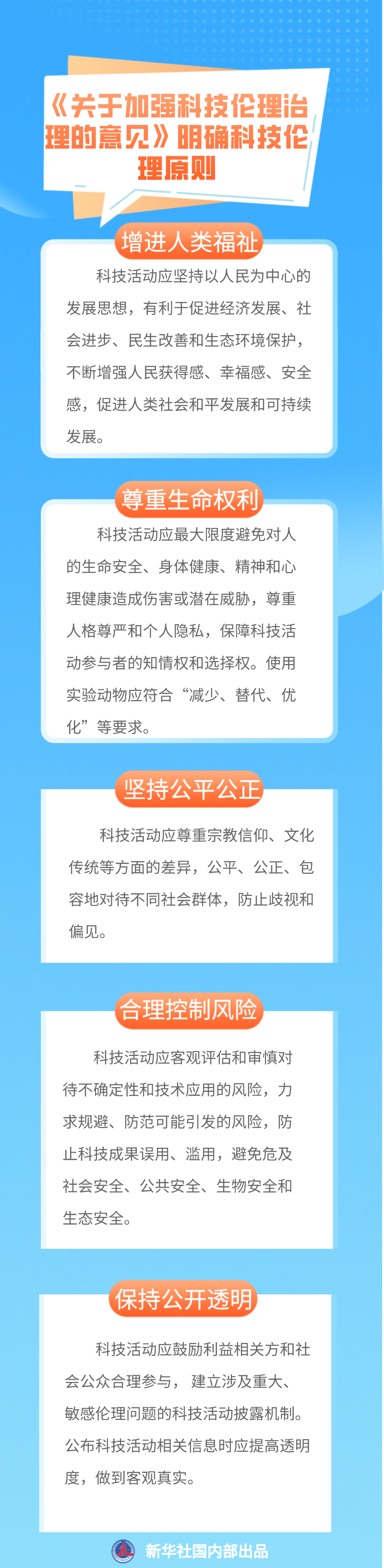 此次两办印发的意见不仅提出了“伦理先行、依法依规、敏捷治理、立足国情、开放合作”的科技伦理治理要求,更明确了“增进人类福祉、尊重生命权利、坚持公平公正、合理控制风险、保持公开透明”的科技伦理原则。