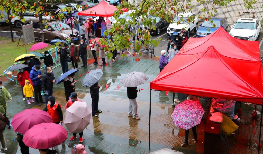上海持续推进核酸筛查工作。3月21日,在位于上海闵行的一个居民小区内,居民排队进行核酸检测采样。新华社记者 方喆摄