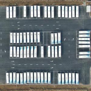 3月24日,沈阳公交系统暂停,这是在沈阳公交车停车场拍摄的公交(无人机照片)。新华社记者杨青 摄