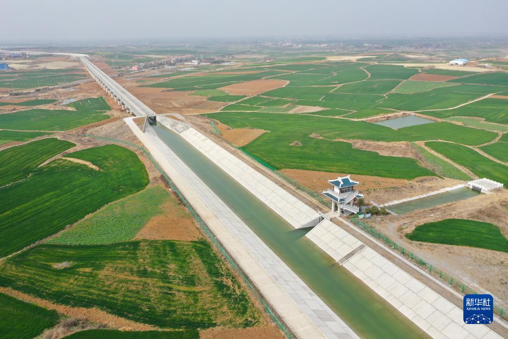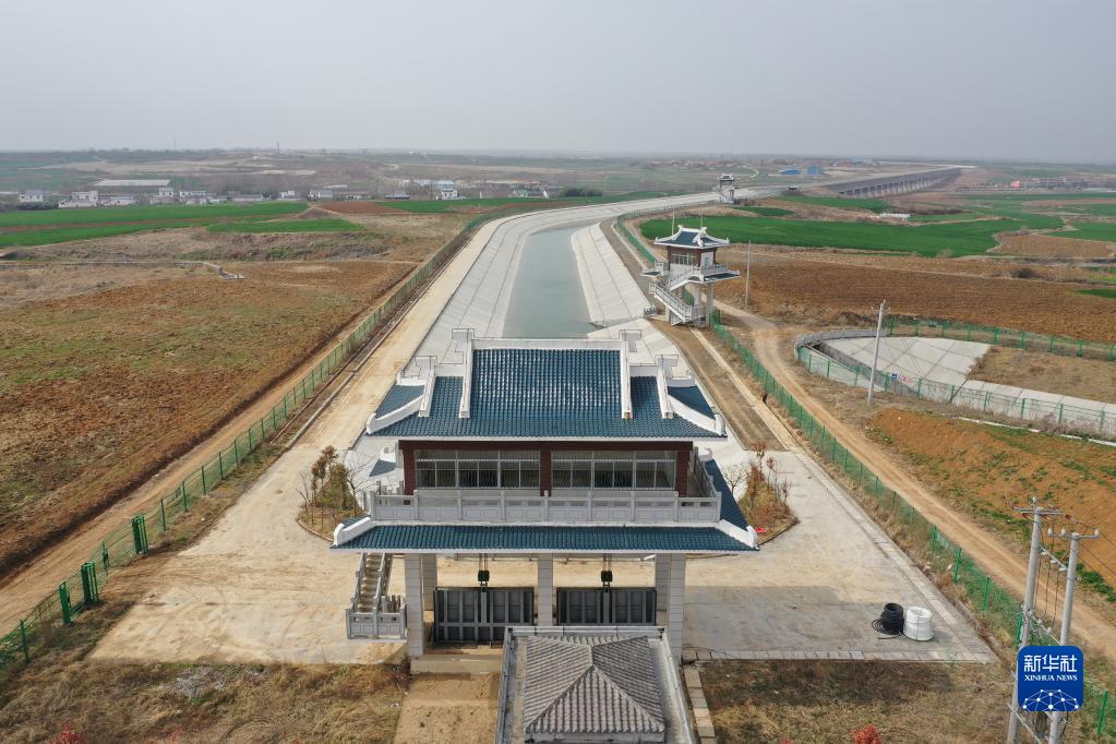 鄂北地区水资源配置工程为湖北省枣阳市境内的农田灌溉送水(3月2日摄,无人机照片)。新华社发(钟华 摄)