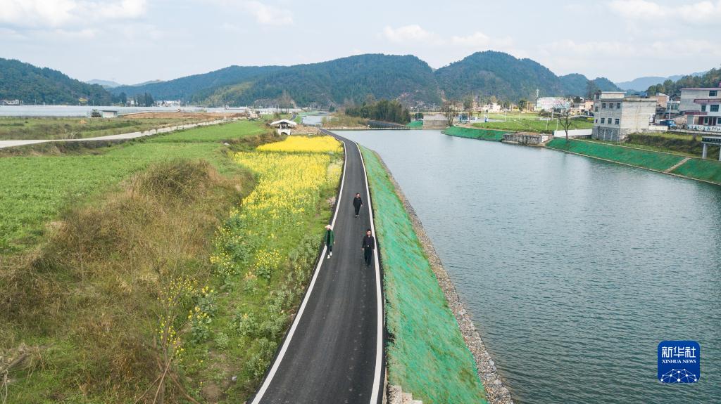 贵州省龙里县湾滩河镇的巡河人员在沿湾滩河两岸巡查(3月15日摄)。新华社记者 陶亮 摄