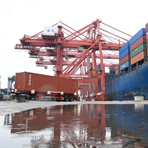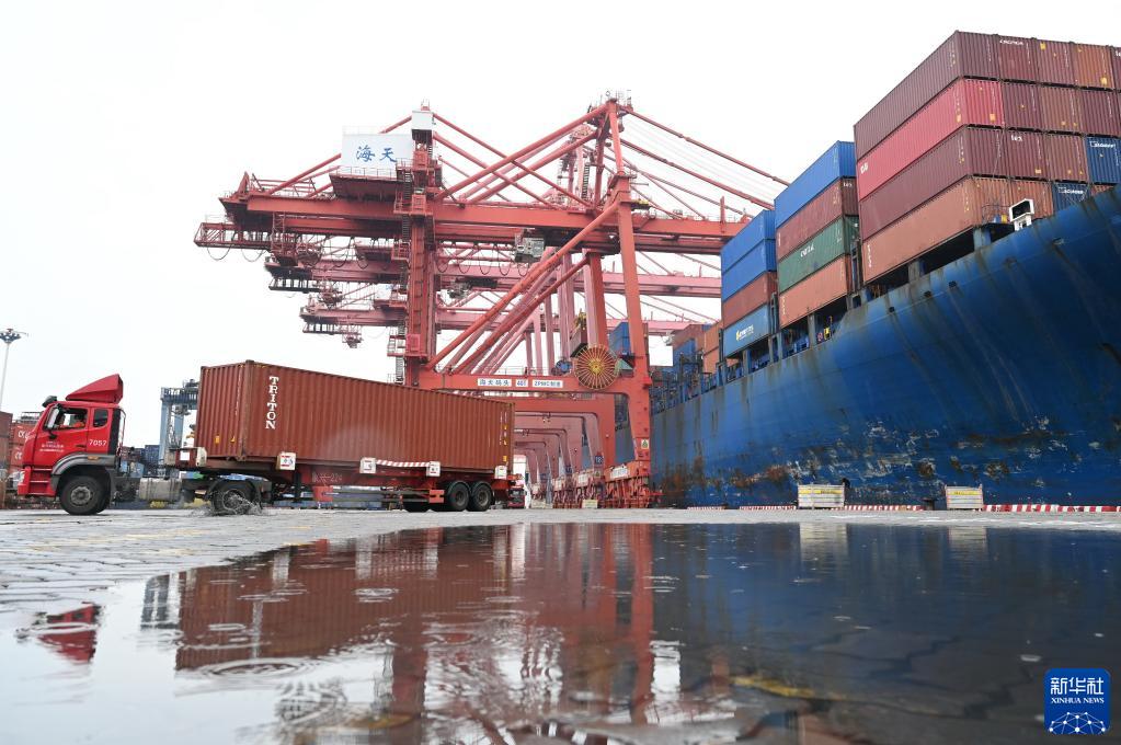 这是3月24日拍摄的厦门海天码头装卸作业现场。新华社记者 林善传 摄