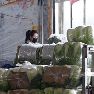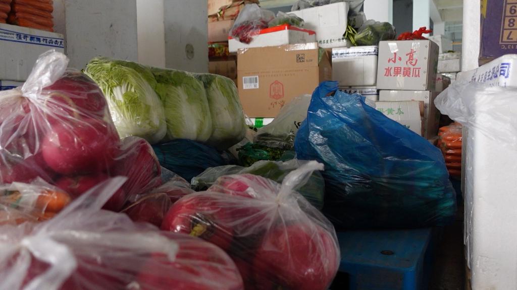 沈阳副食集团厨房速递库房内,团购配送的蔬菜等待被送往企事业单位的食堂。新华社记者 张琦汝 摄
