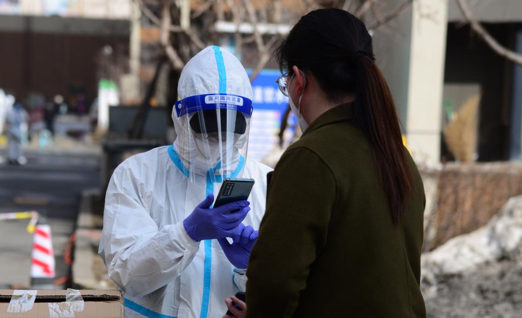 3月24日,在长春市南关区一处核酸检测点,居民扫码登记信息。新华社记者 张建 摄