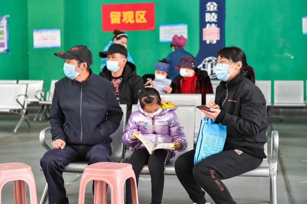 3月22日,在呼和浩特市公主府公园新冠疫苗接种点,接种完疫苗的市民在留观区等待。新华社记者 刘磊 摄
