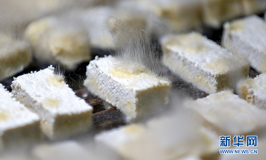竹条上发酵中的毛豆腐(3月14日摄)。