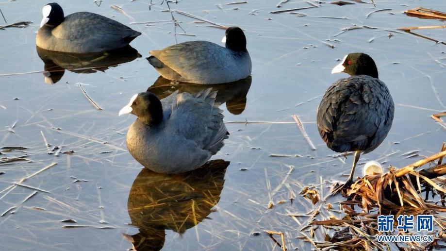 候鸟在水面嬉戏。新华网 发(刘亮亮 摄)