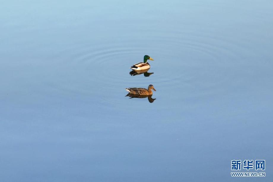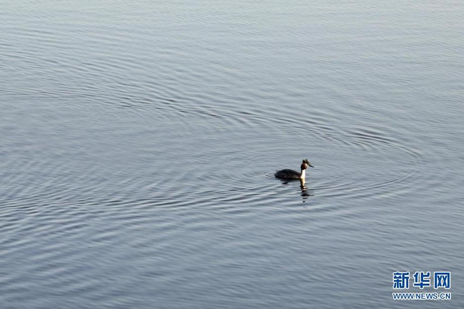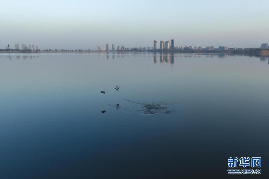 候鸟掠过,水面泛起涟漪。新华网 发(刘亮亮 摄)