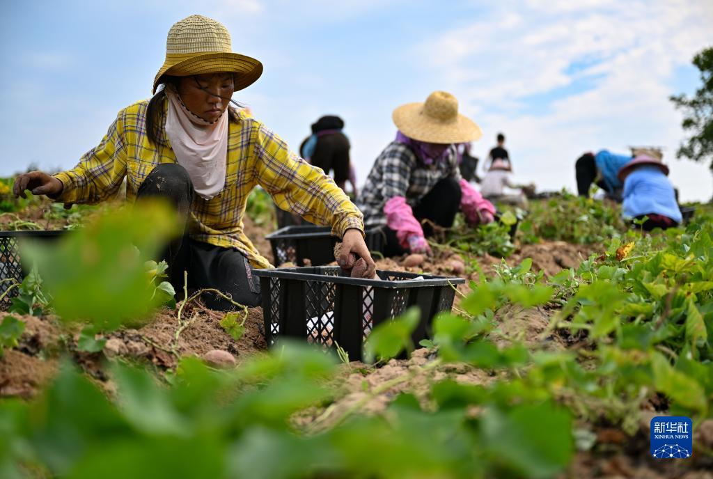 3月26日,工人在文昌市昌洒镇田间采收地瓜。