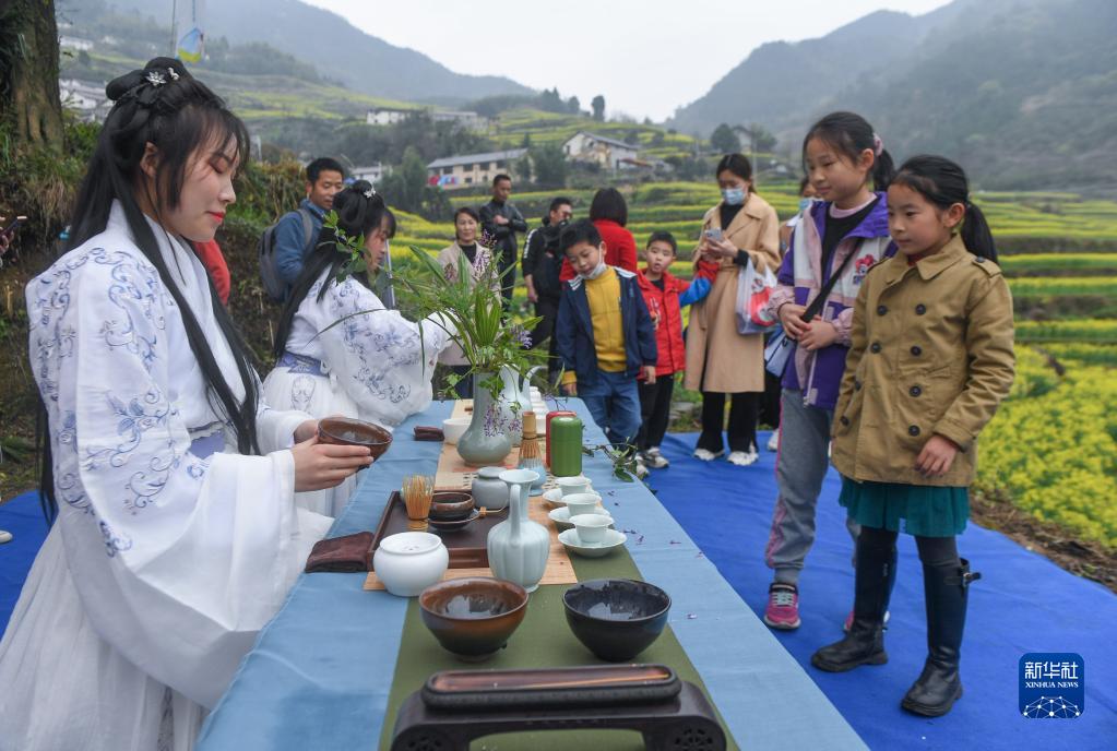 3月27日,胥岭村“花朝节”上进行茶艺表演。
