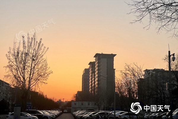 今晨,北京朝霞满天。(图/中国天气网 王晓)