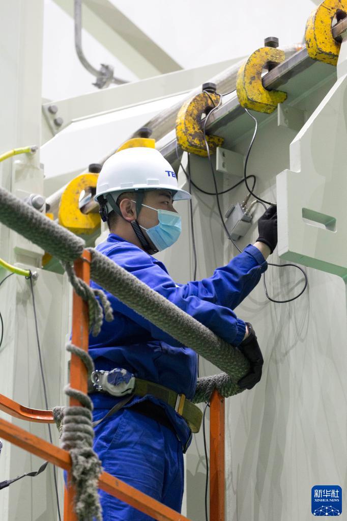 3月27日,在位于辽宁省沈阳市铁西区的特变电工沈阳变压器集团有限公司,工人在生产白鹤滩-浙江特高压直流输电工程产品。