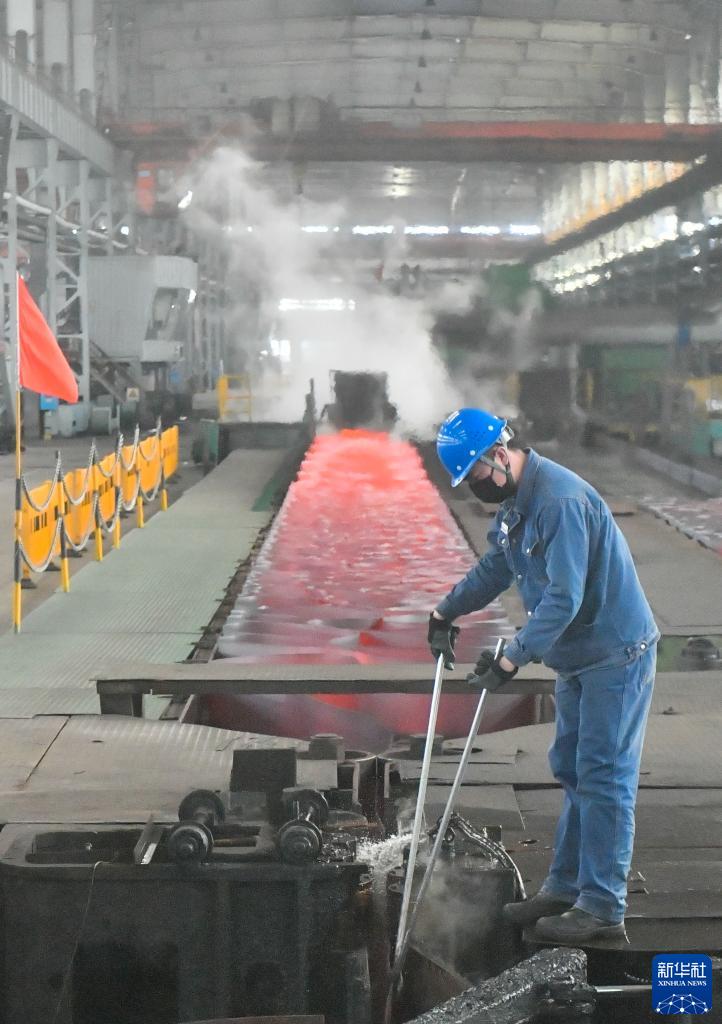 3月28日,在天津市新天钢联合特钢有限公司带钢厂,工人在车间作业。