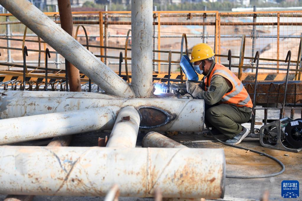 3月28日,工人在中铁四局引江济淮工程江淮沟通段合九铁路改建工程施工现场作业。引江济淮工程沟通长江、淮河两大水系,是我国跨流域、跨省重大战略性水资源配置和综合利用工程。