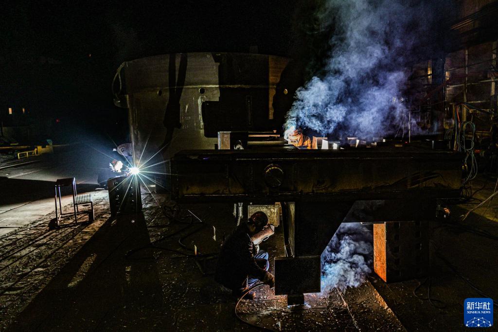 3月24日,在位于辽宁省沈阳市铁西区的方大集团沈阳北方重工有限公司,工人在车间焊接产品。