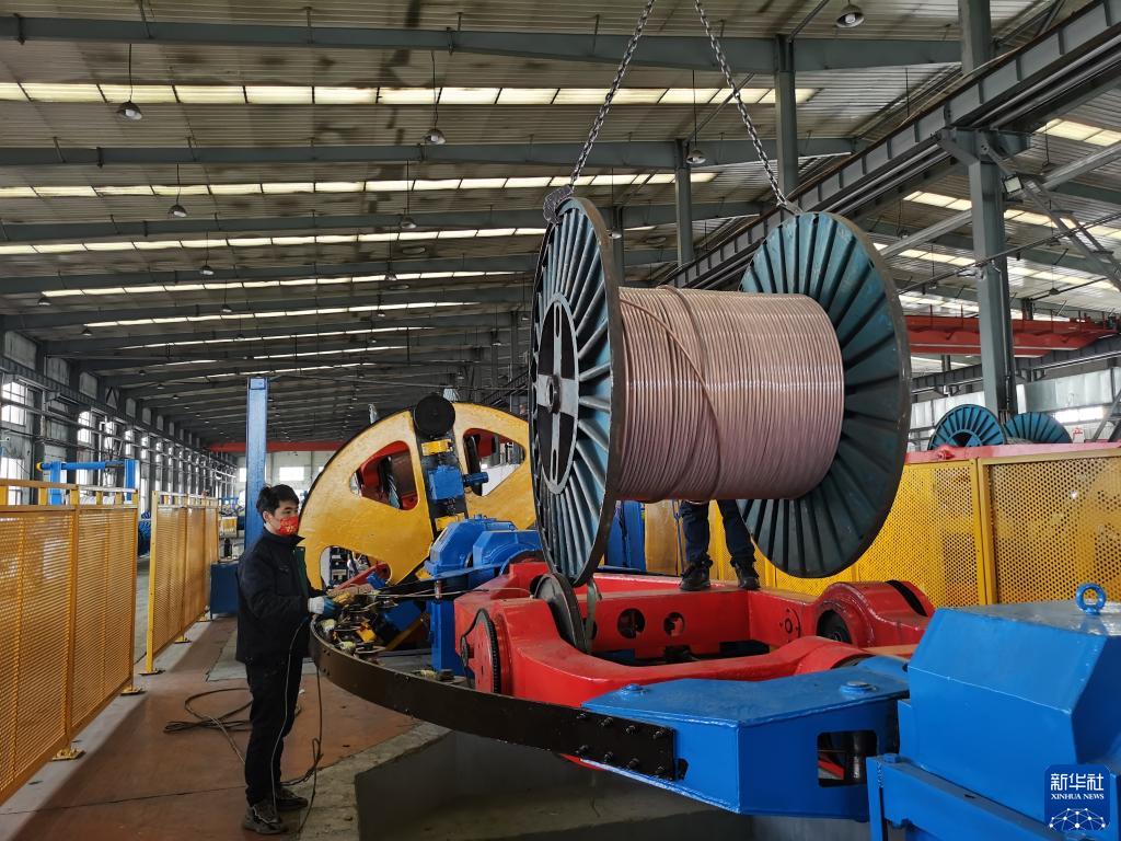 3月27日,在辽宁省铁岭市铁岭县辽宁津达线缆有限公司,工人在生产电缆。