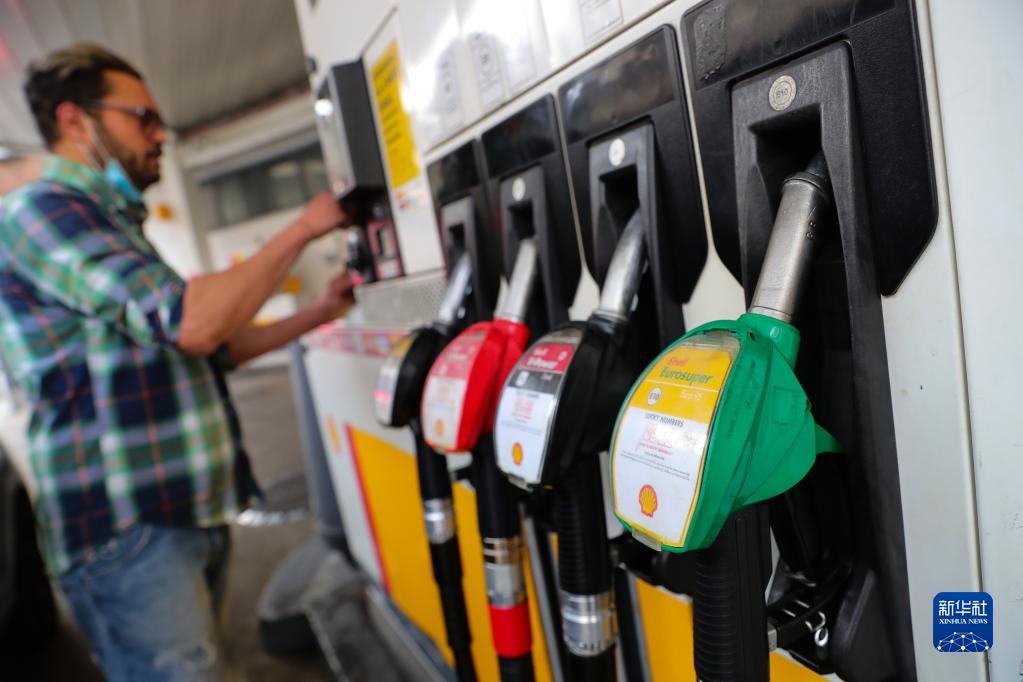 3月29日,一名男子在比利时布鲁塞尔的一个加油站付款加油。