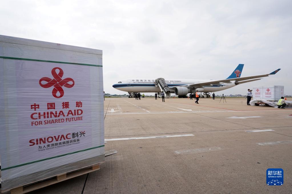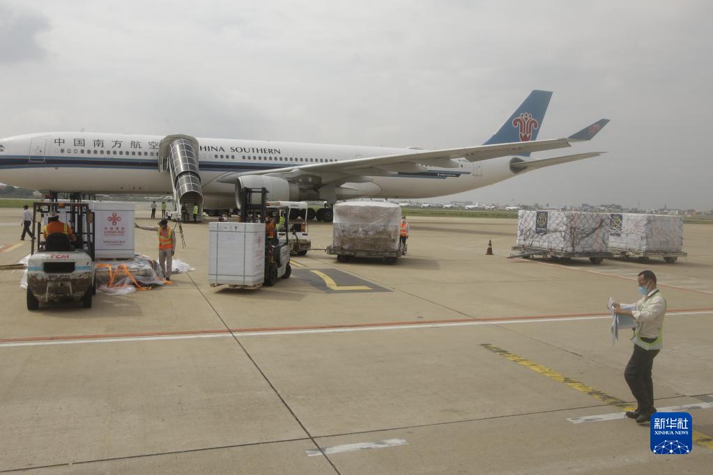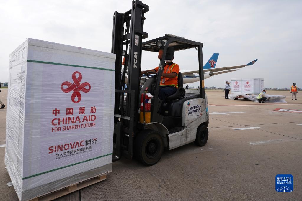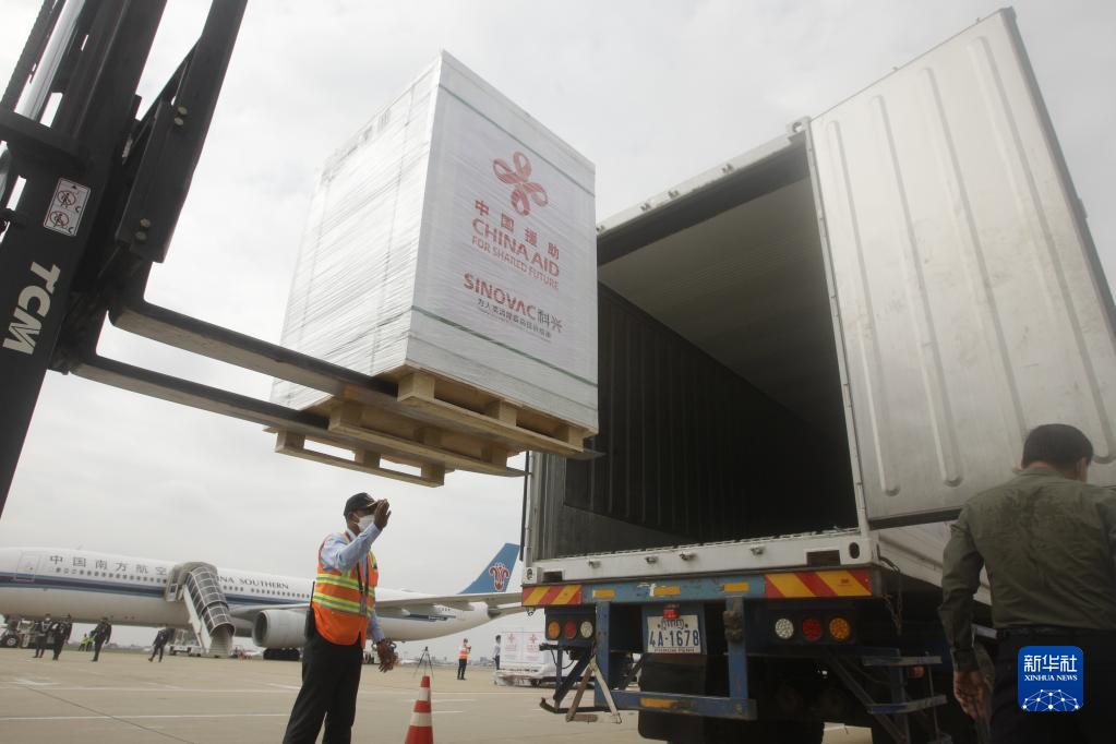 3月29日,中国援柬埔寨第八批新冠疫苗运抵金边。新华社发(李莱摄)