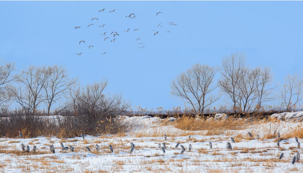 在同样位于宝清县境内的黑龙江七星河国家级自然保护区,自3月10日起,保护区已监测到3000余只候鸟回归,其中以鹤类、鹭类、雁鸭类候鸟居多,包括丹顶鹤、白琵鹭、白额雁等20余种。