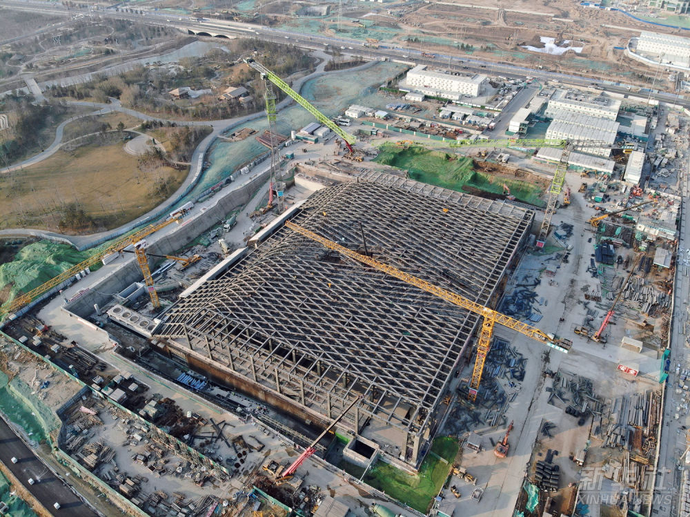 这是建设中的雄安新区城市计算(超算云)中心项目(无人机照片,2022年1月5日摄)。该项目是雄安数字孪生城市“之脑”“之眼”“之芯”,将为整个数字孪生城市的大数据、区块链、物联网、AI、VR/AR提供网络、计算、存储服务。