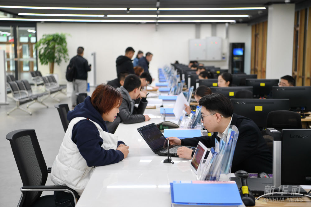 群众在雄安市民服务中心内办理业务(2019年1月17日摄)。2021年,雄安新区提出“一窗受理、一网通办、一次办结、一枚印章管到底”的“四个一”审批模式,推动技术、人才、资金等要素资源集聚。