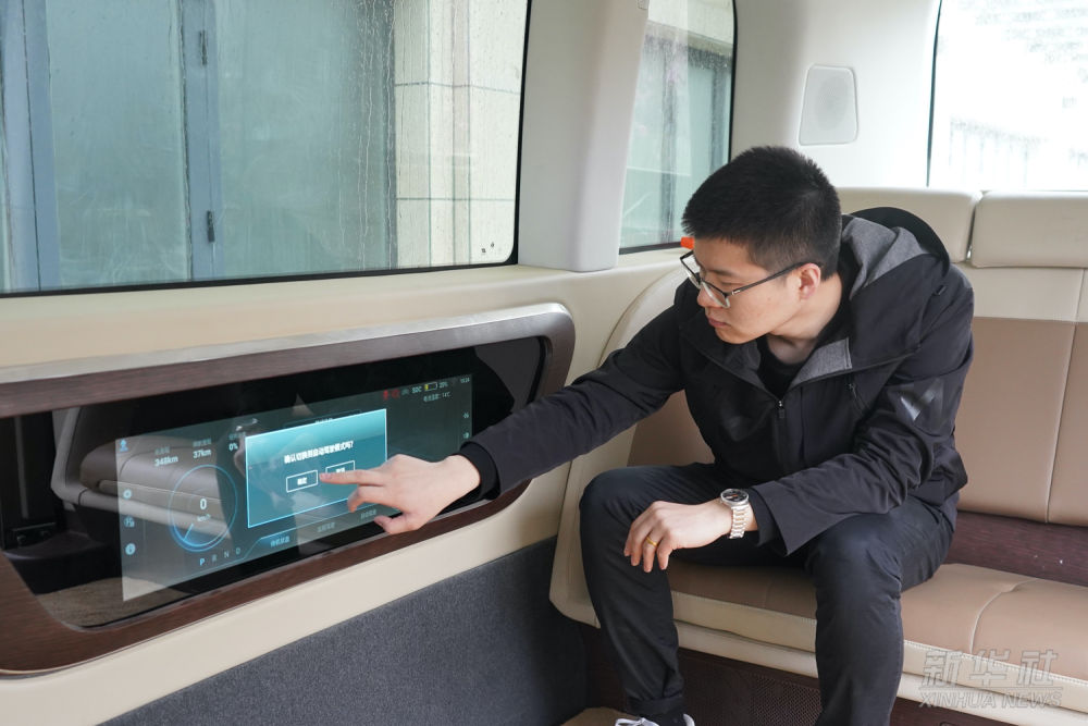 在雄安智绘未来科技园,雄安数字交通实验室工作人员操控无人驾驶汽车进行自动驾驶(2021年3月26日摄)。