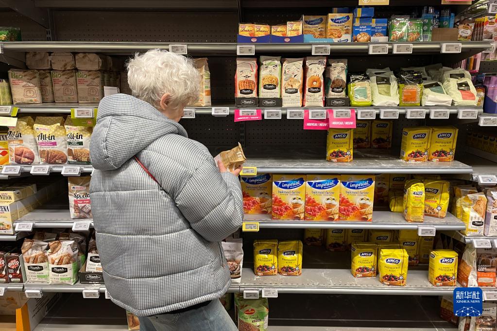 4月1日,顾客在比利时布鲁塞尔的一家超市选购面粉(手机照片)。