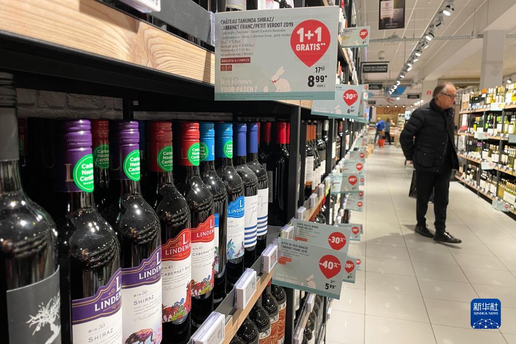 4月1日,顾客在比利时布鲁塞尔的一家超市购物(手机照片)。
